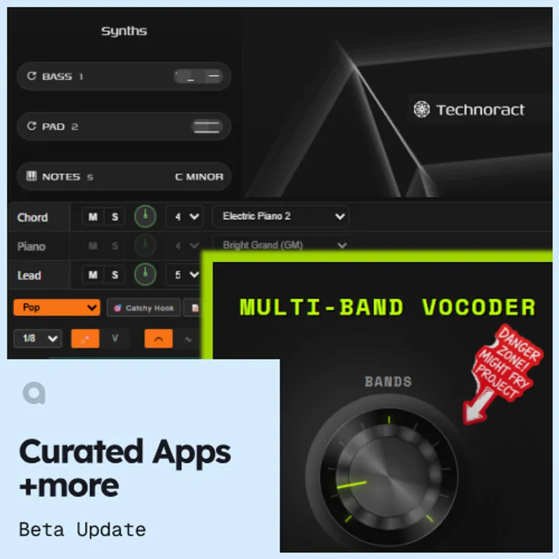 The HUB now includes a Curated Apps section that surfaces a selected set of Nexus apps. These apps are built with the Audiotool SDK and run directly inside multiplayer DAW sessions. Developers can create browser based music tools that integrate with the Studio.
